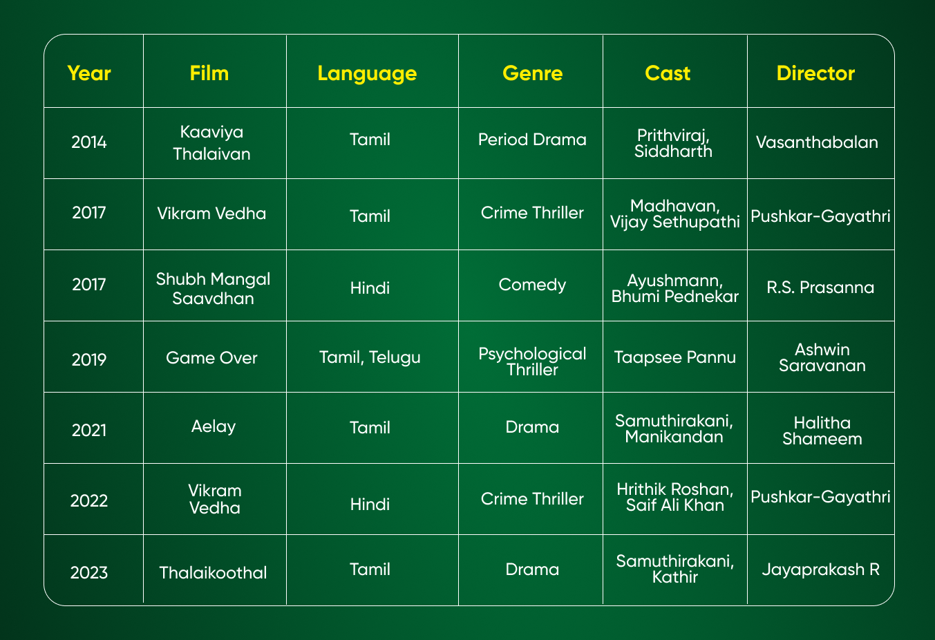 At the same time, they have had numerous big hits with A-listers like the Madhavan-starrer Irudhi Suttru (remade in multiple languages), Vikram Vedha featuring Vijay Sethupathi and Madhavan, and the recent Pan-India success of its Hindi remake led by Hrithik Roshan and Saif Ali Khan. Even among these mass-appealing projects, the focus remains on freshness in content and style.